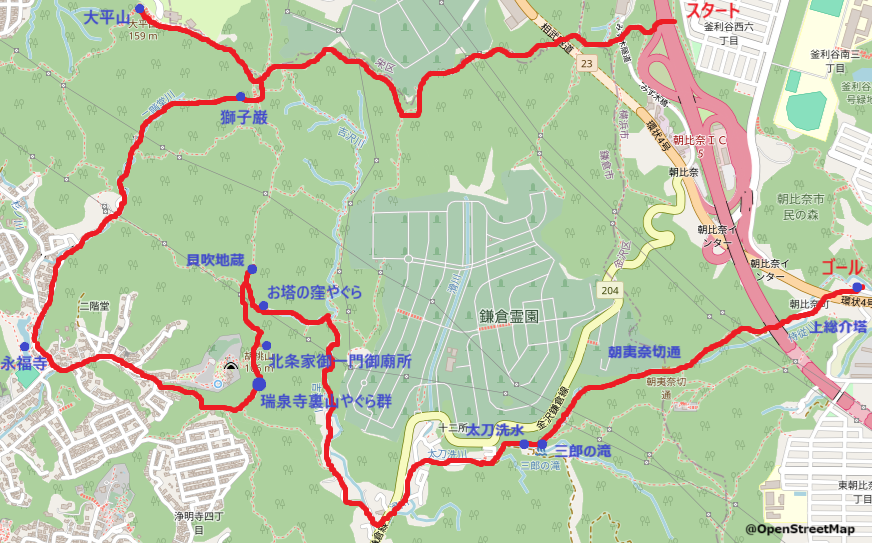 朝夷奈切通を抜けてゴールにたどり着きました!