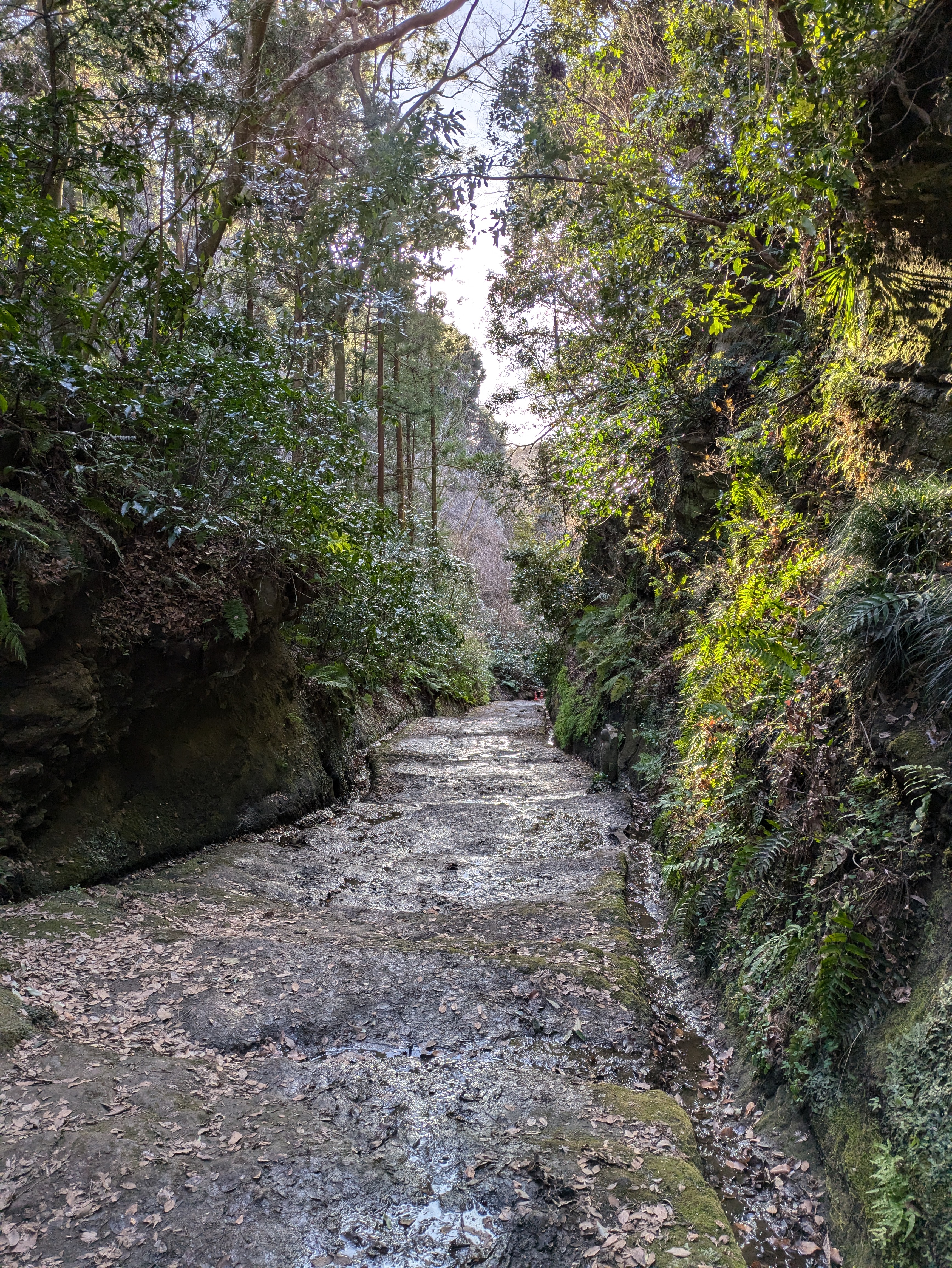 貝吹地蔵から前編で紹介したお塔の窪やぐら通って、写真を撮っている余裕があまりないような茂みや湿地を1時間ほど歩きます。