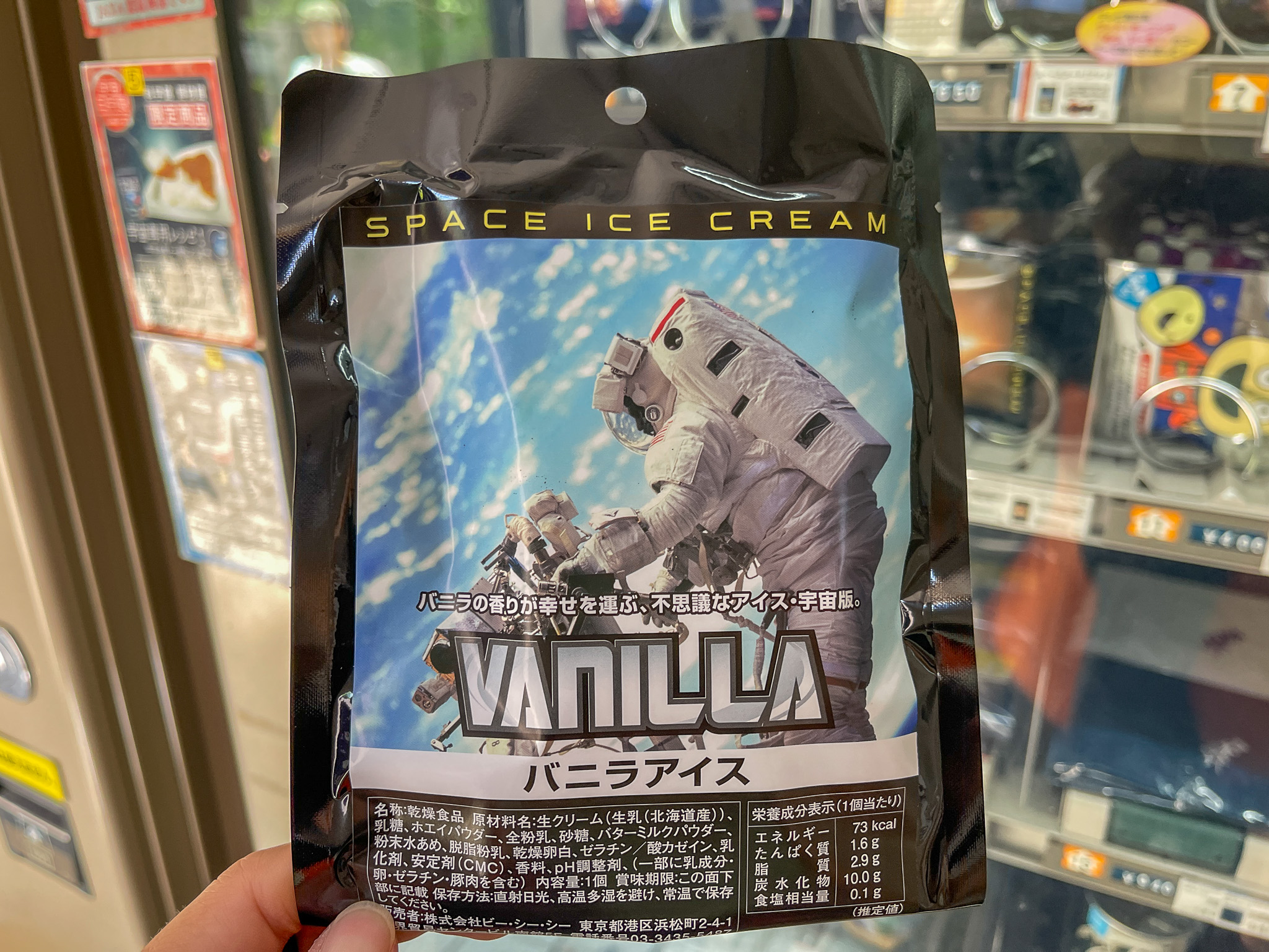 暑い日でつい冷たいアイスが食べたくなりましたが、宇宙食のバニラアイスは全然冷たくなく、フリーズドライのミルク菓子のような味でした。