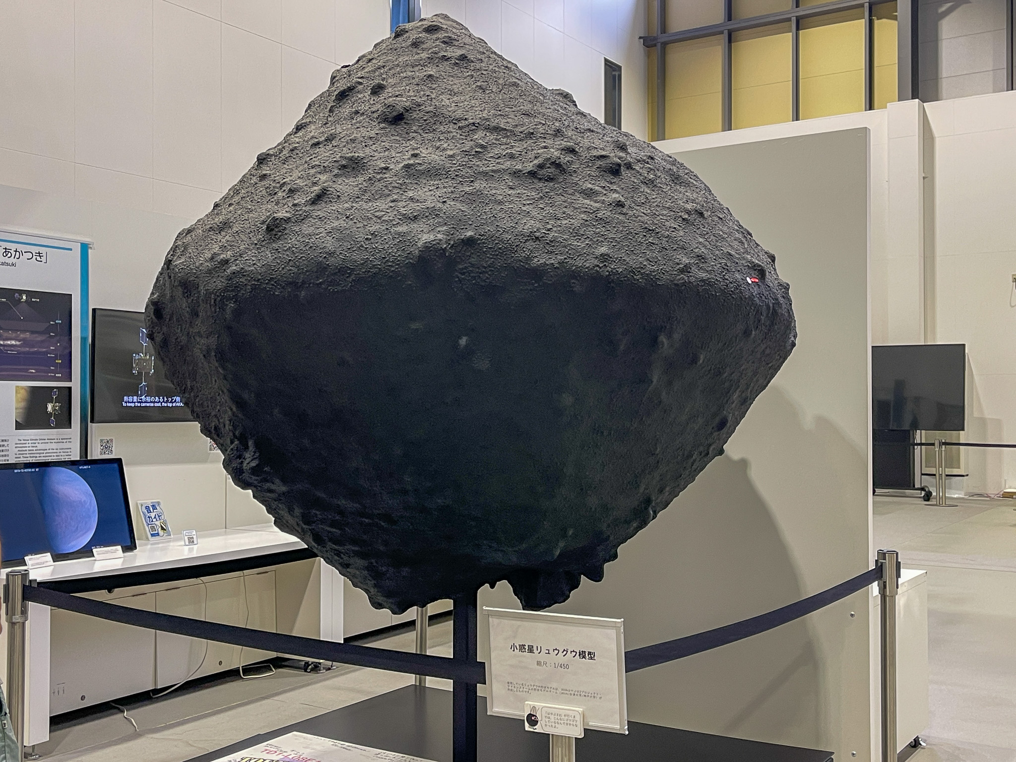はやぶさ2がサンプルを持ち帰った小惑星「リュウグウ」の模型も展示されています。