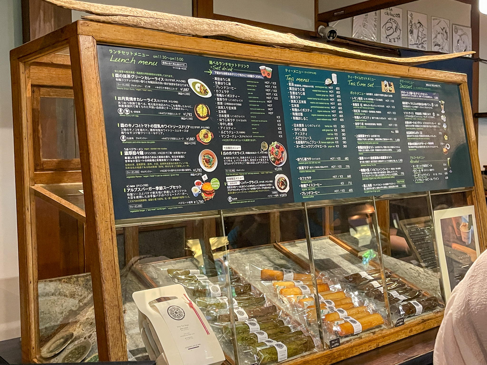 奥に進むとカフェスペースがあり、食事やカフェ利用が楽しめます。