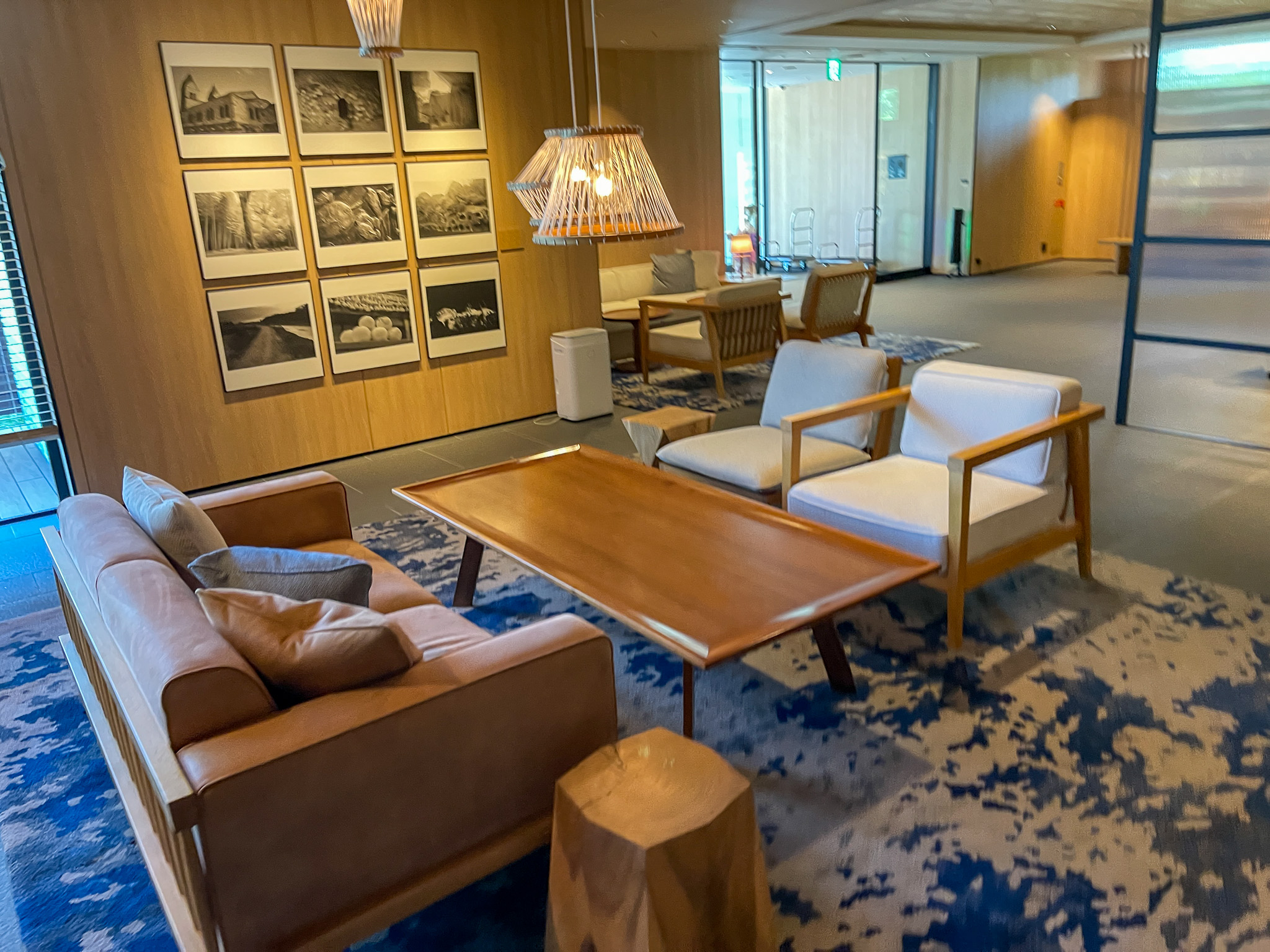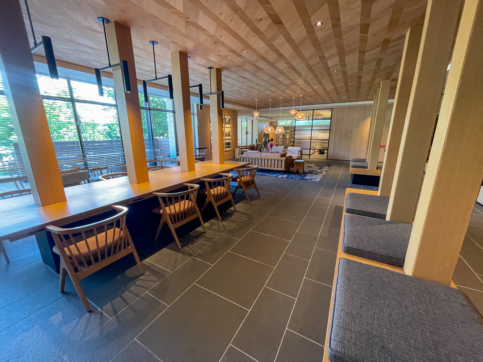 ロビーは広々としていて、カウンター席やソファ席が設置されています。