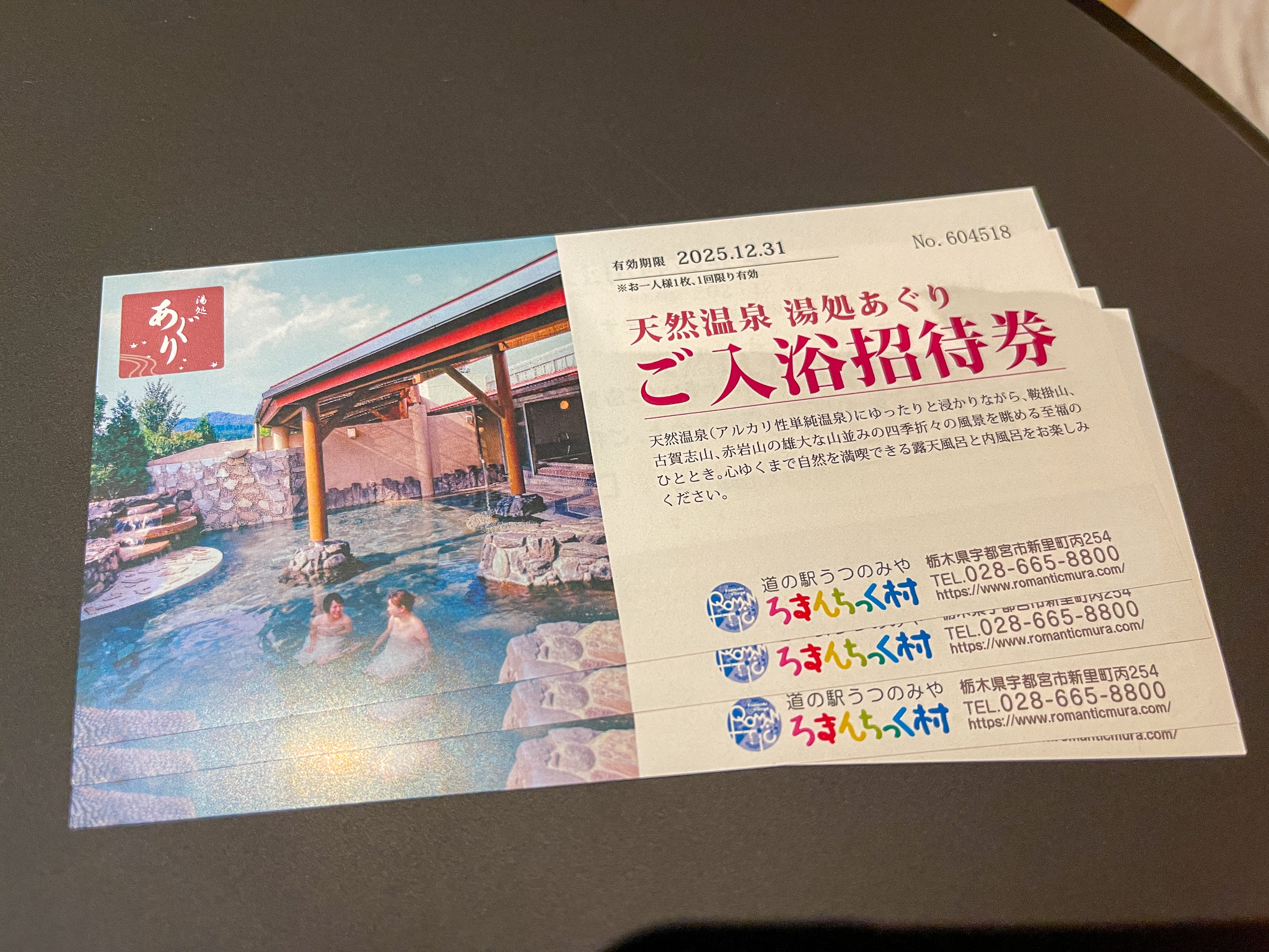 宿泊特典で、天然温泉「湯どころ あぐり」 の入浴券が付いていました。