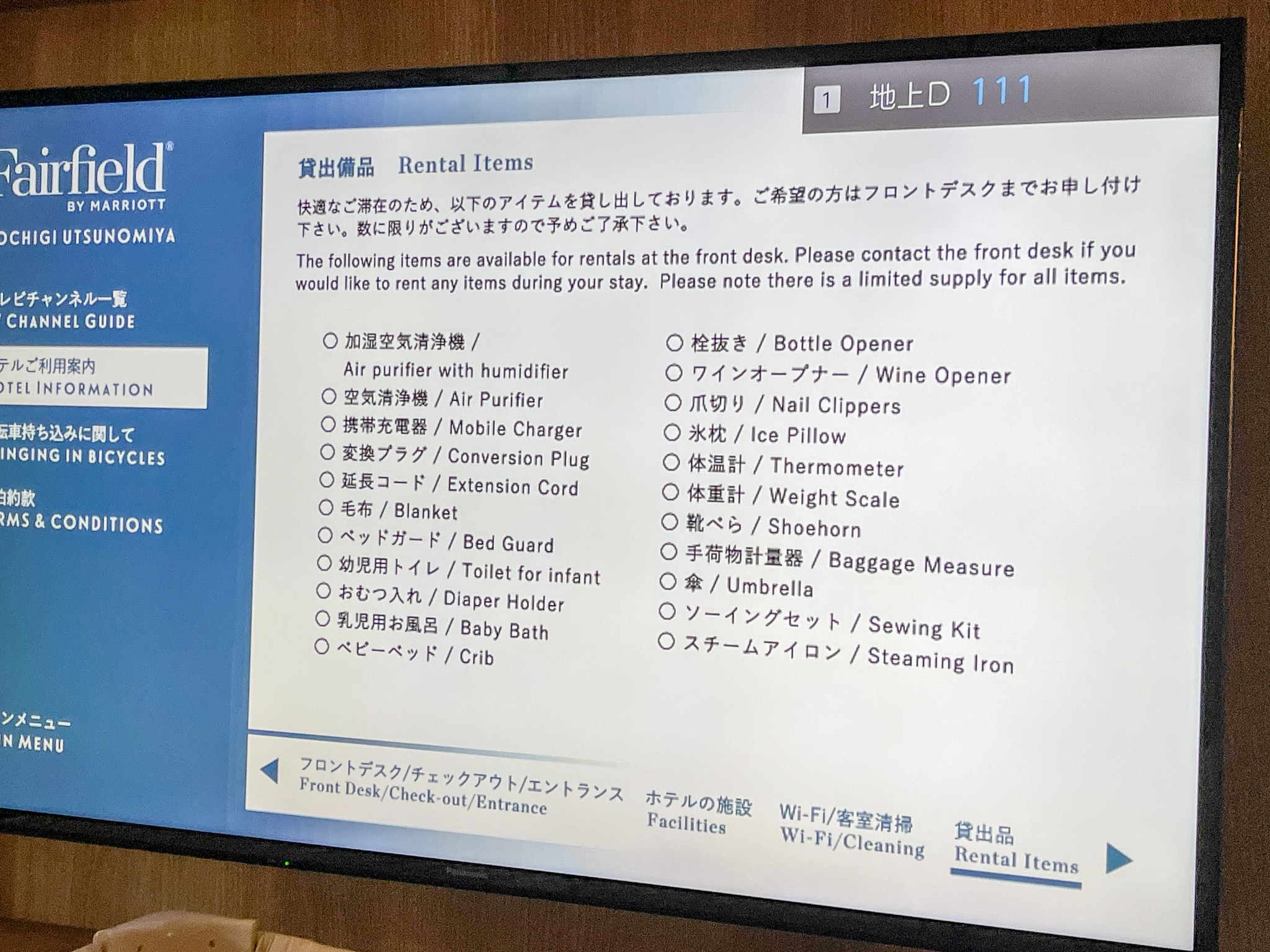 「フェアフィールド・バイ・マリオット・栃木宇都宮」は、子連れに優しい工夫が随所に感じられるホテルでした。ベビーベッドやごみ箱、ミルク対応設備など、赤ちゃんと一緒でも安心して泊まれます。さらに温泉利用券や商品券などの特典もあり、宿泊以上の満足感が得られました。