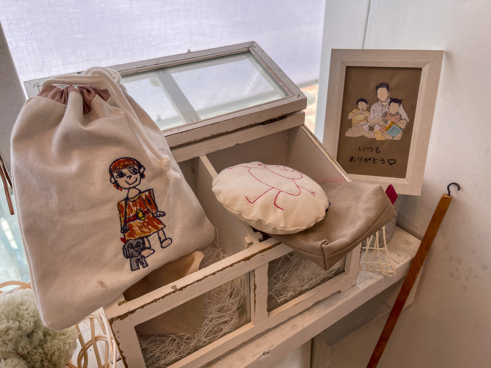子どもの描いた絵をそのまま刺繍にしてくれる「世界にひとつのオリジナル刺繍」で、