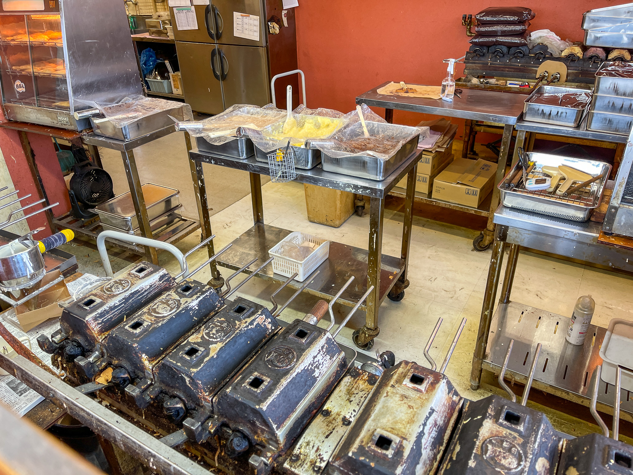 カウンターの奥には、たい焼きの焼き台がずらり。