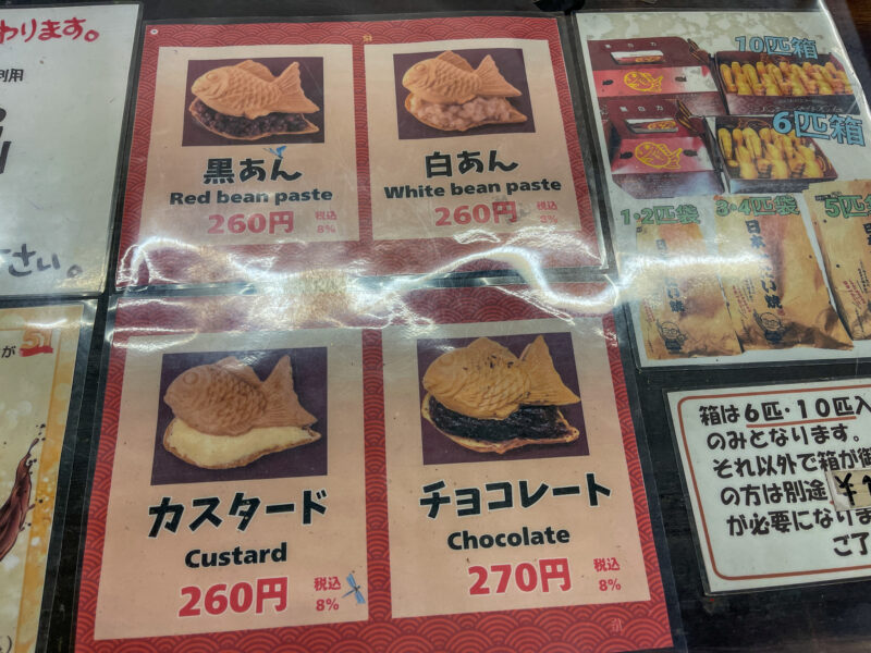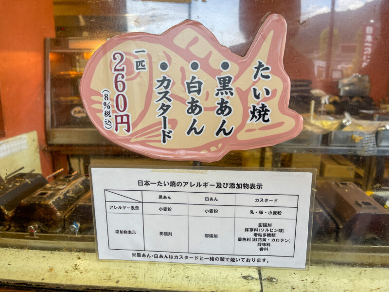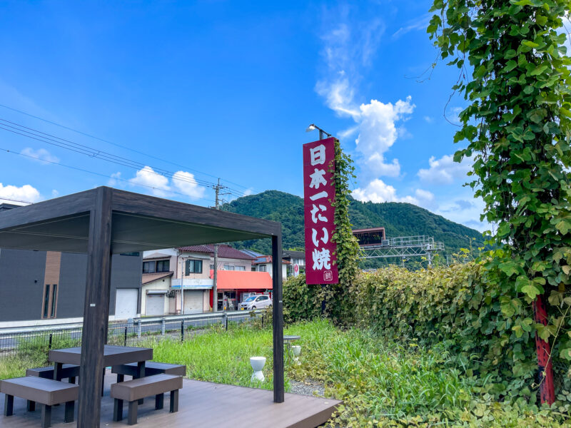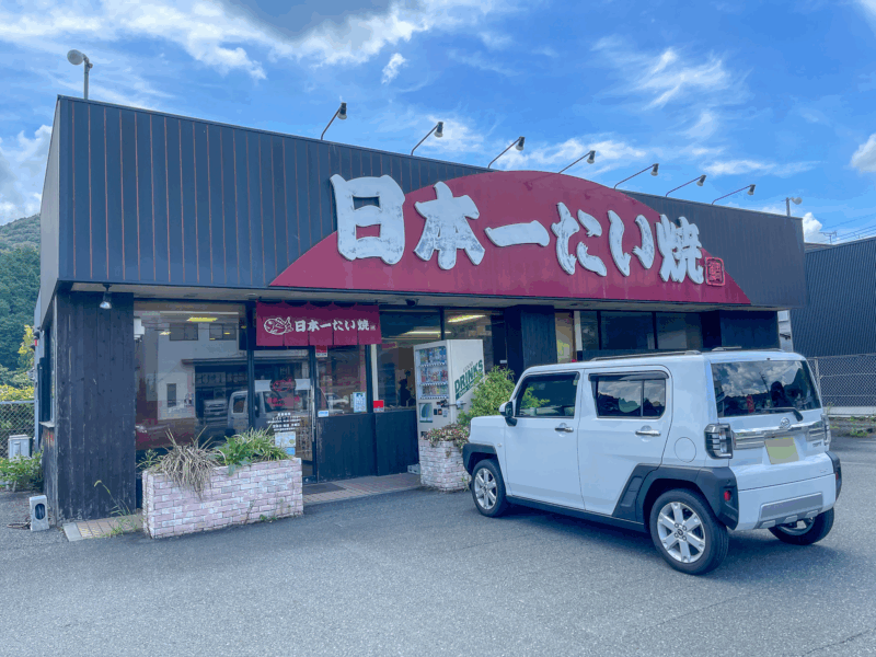 大きくてインパクトのある赤い看板に、力強く「日本一たい焼」と書かれていて、遠くからでもすぐに見つけられます。