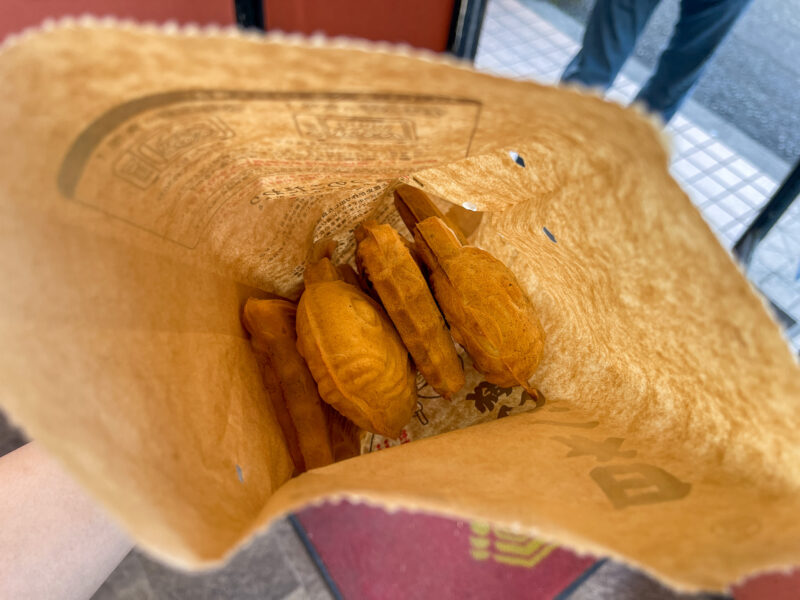 袋の上の方に鯛焼きの並び順でスタンプを押してくれているので分かりやすいですね!