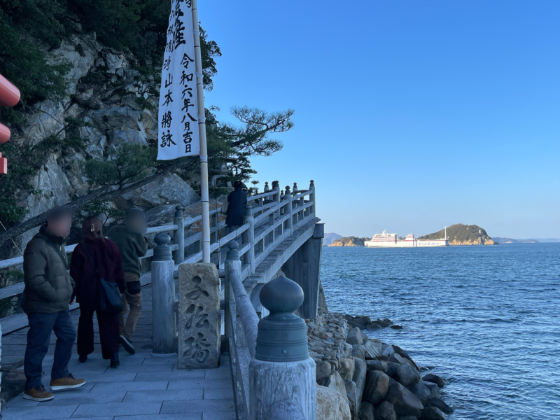 竹居岬は、瀬戸内海を一望できる絶景スポットとして知られ、海が見える参道を進むと、本堂の前に広がる青い海と島々の風景が目に飛び込んできます。船が行き交う様子を眺めながら静かな時間を過ごせるのが、この場所ならではの魅力でした。