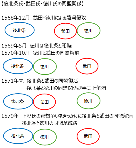 武田氏が織田信長との戦いで劣勢であることを察知した北条氏政は、武田領であった駿河に侵攻し、1582年3月1日にかつて武田氏に奪われた深沢城を落とすなど、駿河東半分を掌握しました。