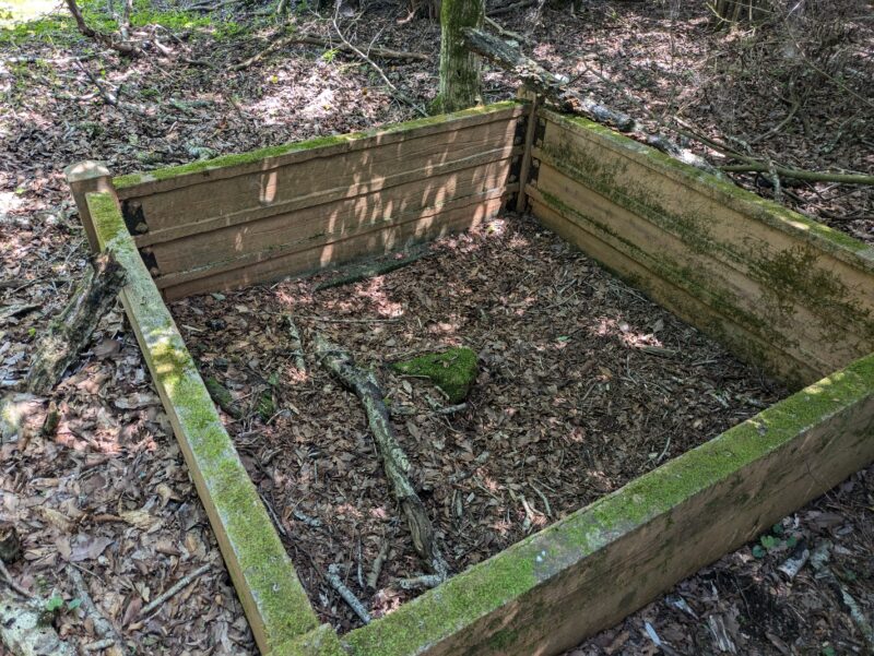 東西方向に広い長方形の曲輪で、主郭とほぼ同じ規模となっています。東側に土塁、曲輪内には井戸跡(下記写真)が残っています。また、五の曲輪へと続く西側には枡形虎口があり、その先には櫓台状の堡塁があります。この堡塁は四の曲輪に付属する馬出とする見方もあります。※1
