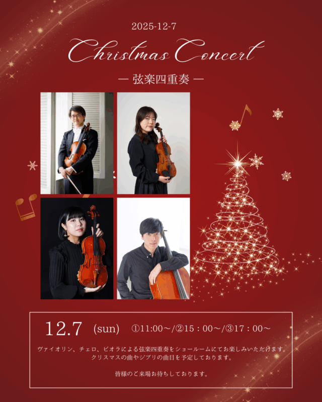 4人の弦楽演奏者がクリスマススペシャルコンサートを開催いたします。