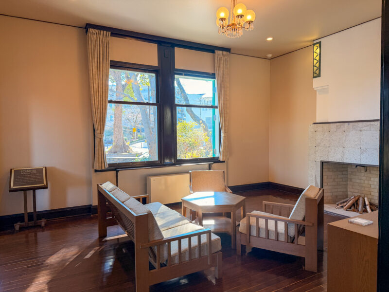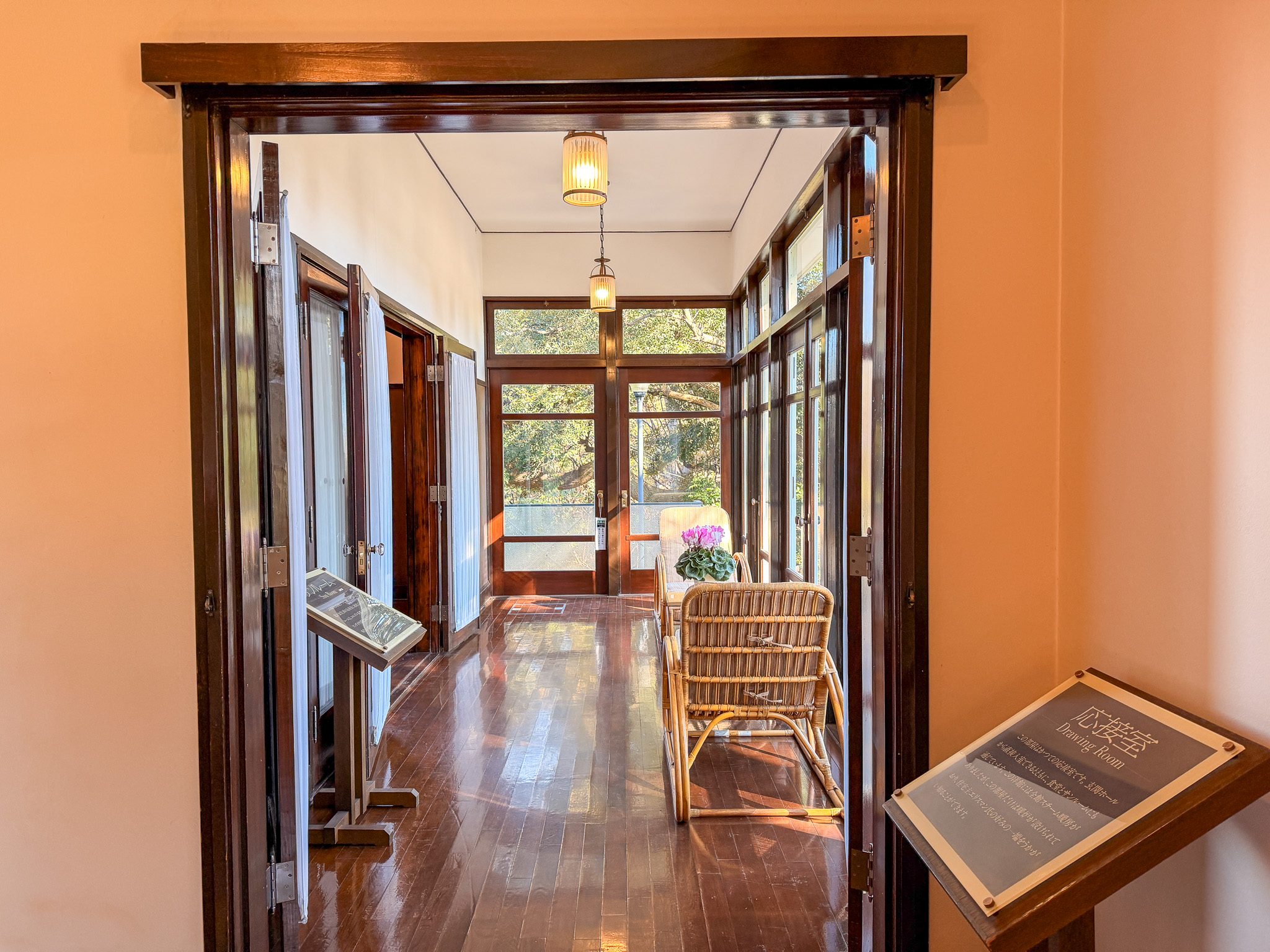 エリスマン邸の中で、私が最も心惹かれた場所が「サンルーム」です。 建物の南側に位置するこのスペースは、三方が大きなガラス窓に囲まれており、冬の低い日差しが部屋の奥までたっぷりと降り注ぎます。