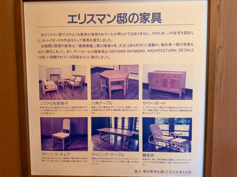 実はエリスマン邸にある家具は、設計者であるレーモンドの作風に合わせて、当時の図面や写真を基に忠実に復元されたものなのです。