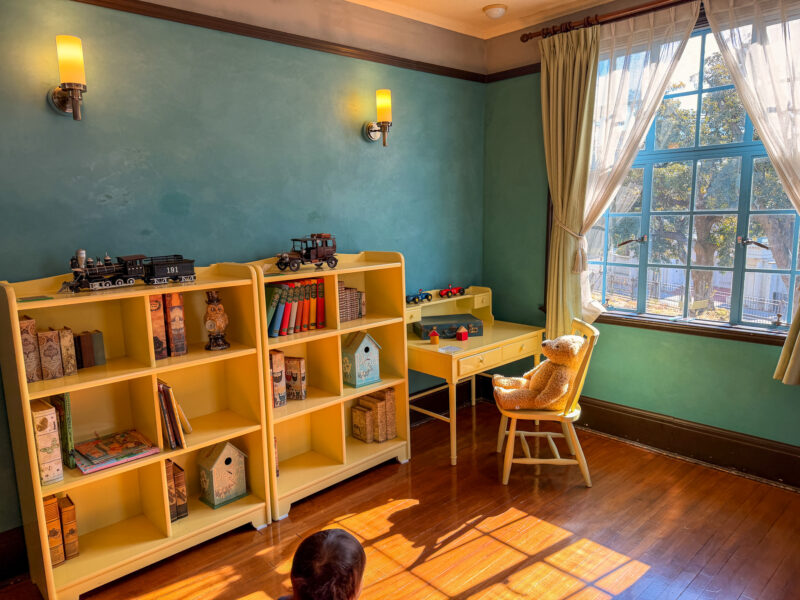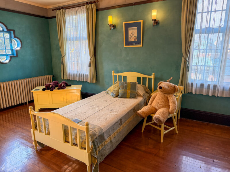 椅子にちょこんと座らされたくまのぬいぐるみ、レトロなおもちゃや本……。さらに実際にプーさんの絵本も置いてあって、その演出が完璧なんです。幼い頃に何度も見たあの夢のような空間が目の前にある。そんな懐かしい気持ちと、洗練されたインテリアの美しさに、しばらく立ち尽くしてしまいました。