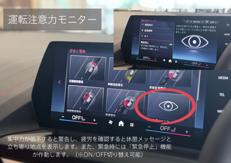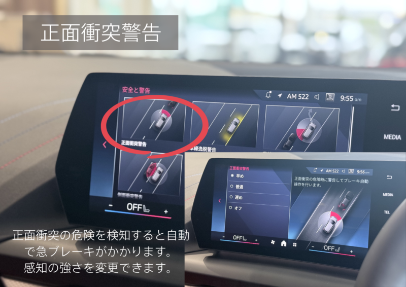 そんな『安全機能』ですが、車ごとに警告の強さや振動のON/OFFを切り替えることができます。