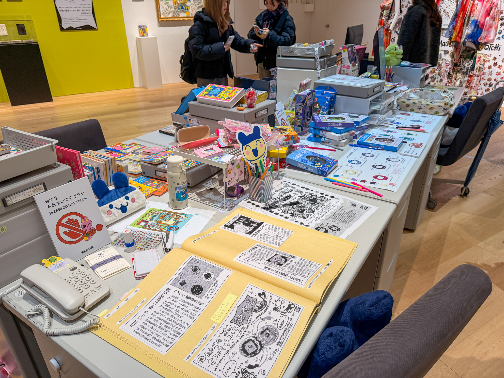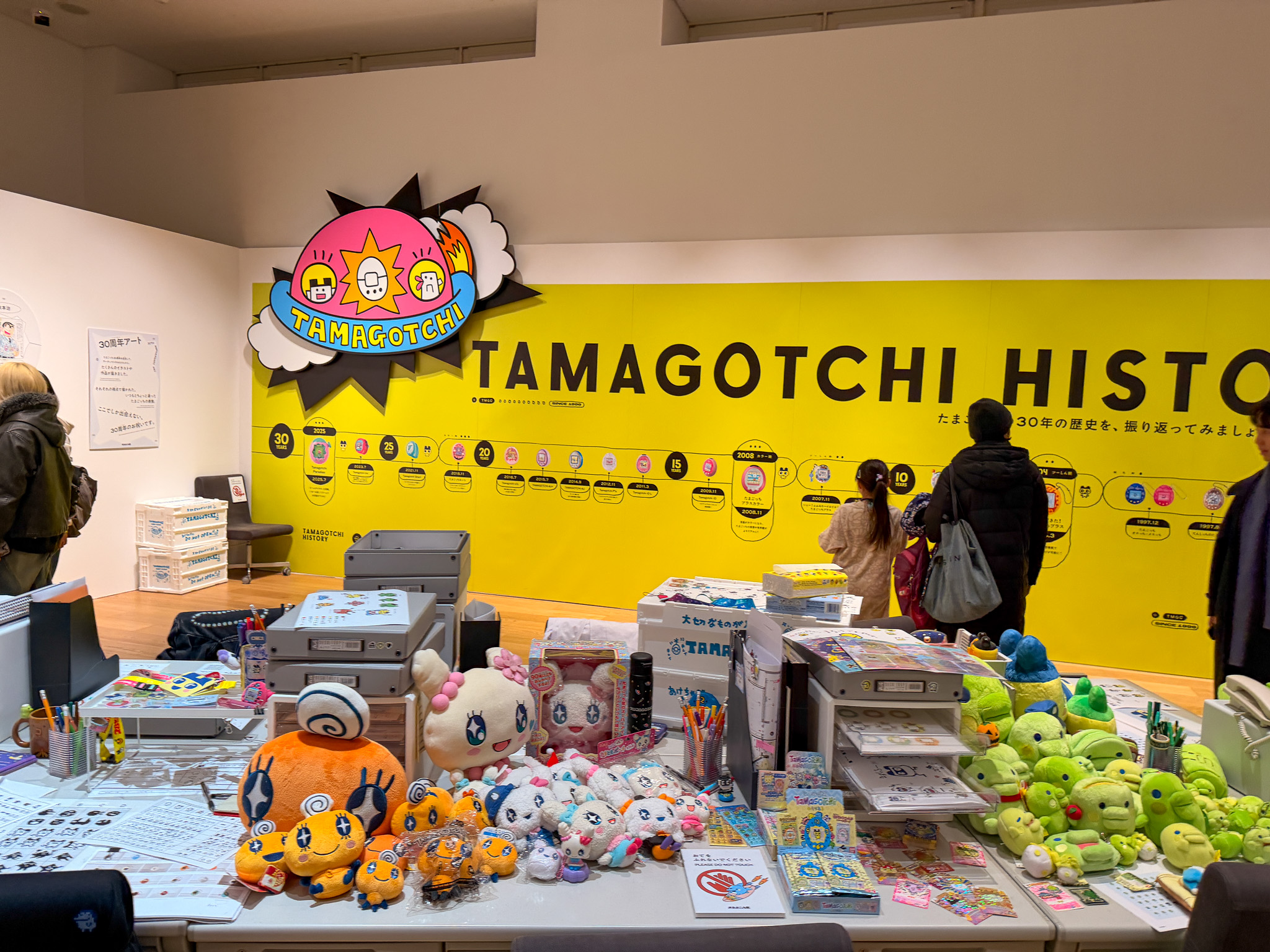 歴代たまごっちがずらり。グッズ盛り盛りデスク展示がすごい