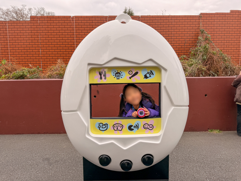 ミュージアムの前には、たまごっちの写真スポットがあり、到着してすぐ撮影タイム。