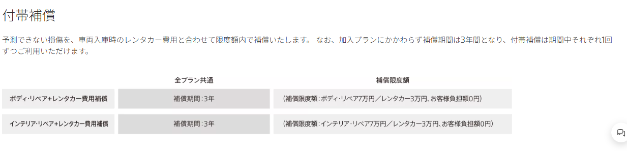 ・タイヤ&キー補償(2年延長パッケージには含まれません。)