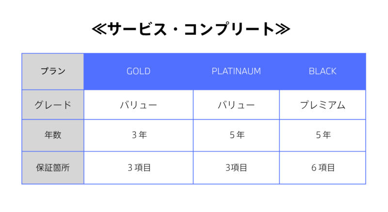 プランのご説明の前に3種類すべてに付いている『サービスコンプリート』(バリューまたはプレミアム)の詳細をご紹介します。