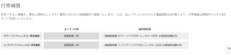 GOLD/PLATINAUM/BLACKどれをお選びいただいてもリペア7万円分・レンタカー3万円分が1回まで付きます。