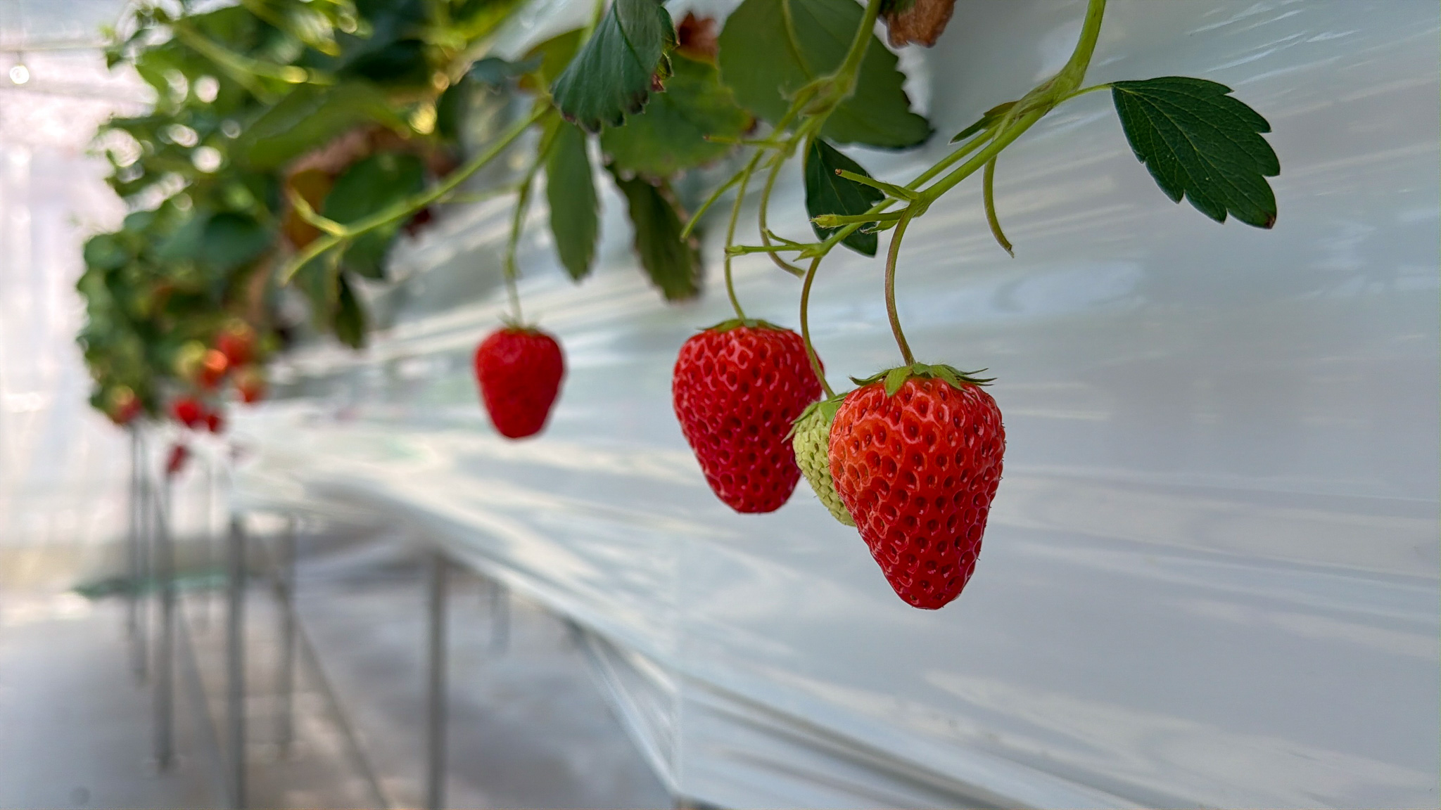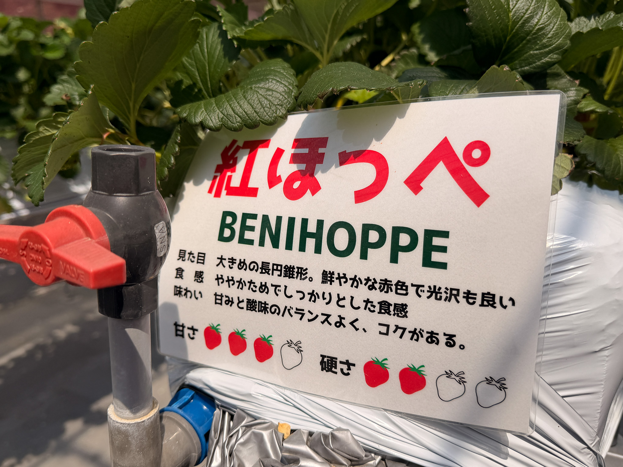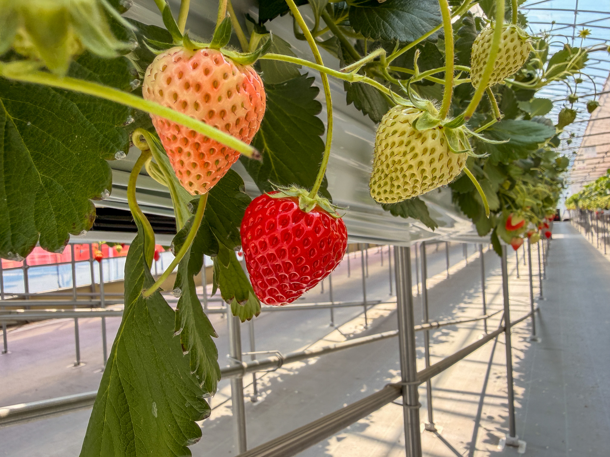 ハウス内には3種類のいちごがあり、食べ比べが楽しめます。