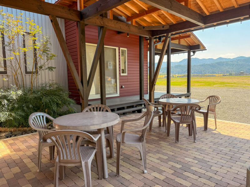 外にはテーブル席もあり、座って食べることも可能。