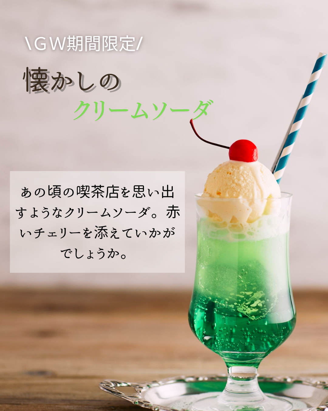 『懐かしのクリームソーダ』をご用意いたしました🍹🍨