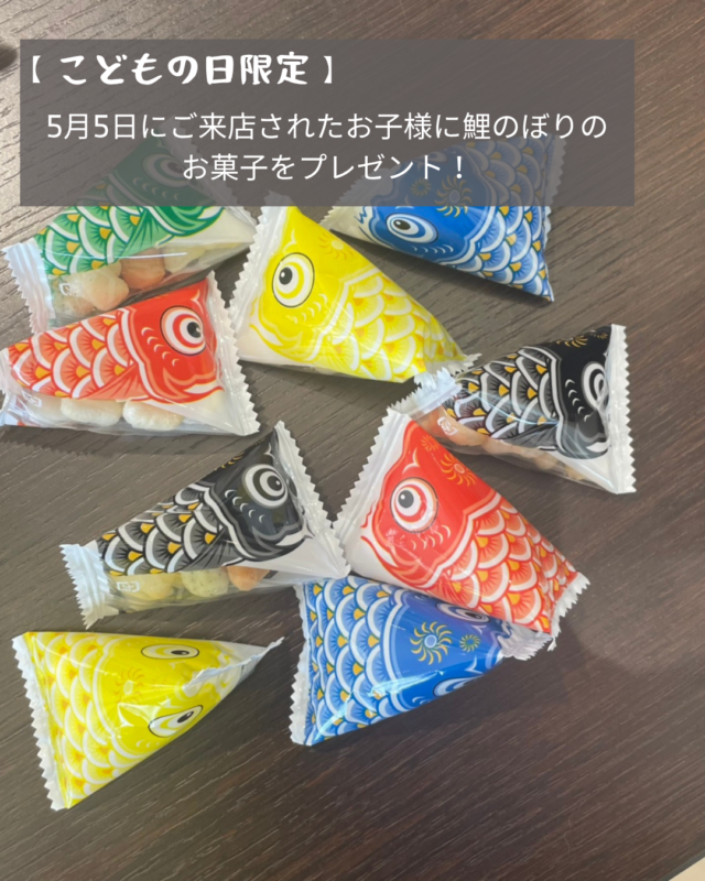 5月5日にご来店されたお子様に鯉のぼりのお菓子をプレゼント!