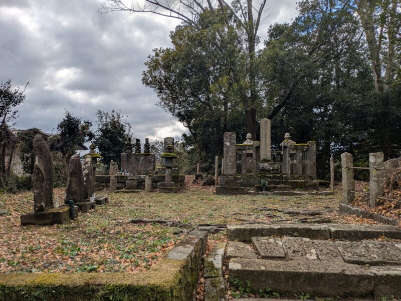 宗閑寺には間宮一族の他に、山中城の戦いで亡くなった後北条方の松田康長や豊臣方の一柳直末などの墓があります。(写真左奥が間宮・松田、左手前が山中城武将、右奥が一柳の墓)